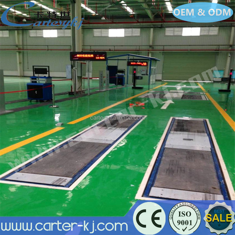 dây chuyền kiểm tra tấm xe bao gồm máy kiểm tra tấm chính là để mô phỏng đường thực tế trên các tấm xe cơ giới đang chạy ở tốc độ 5 đến 10 km/h trên đó, và sau đó thực hiện phanh, một lần có thể hoàn thành trước (hoặc sau) trục xác định động lực của lực phanh, trục (tròn) trọng lượng và kiểm tra trượt ngang của dự án, thông qua việc nghiên cứu các kết hợp khác nhau của hệ thống máy tấm, mà còn cho ô tô, xe máy, xe nông nghiệp của tất cả các loại kiểm tra hiệu suất phanh xe cơ giới. Công ty chúng tôi đã giới thiệu công nghệ châu Âu mới nhất sản xuất dây phanh tấm, công nghệ tiên tiến, thiết kế hợp lý, cấu trúc đơn giản, hiệu suất ổn định, thuận tiện trong vận hành và bảo trì, các chức năng hoàn chỉnh, đặc biệt thích hợp cho trạm kiểm tra ô tô, xưởng sửa chữa và các đơn vị nghiên cứu kỹ thuật và giảng dạy chuyên nghiệp về xe.